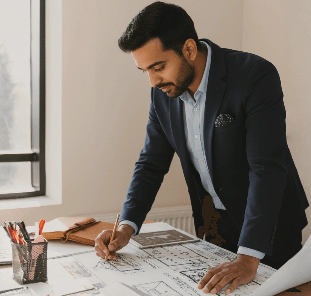Accountability is built into our process through tech-enabled project tracking, real time WhatsApp updates, and transparent pricing. We manage all site coordination, including approvals and vendor alignment, ensuring clients always know the status, progress, and cost of their villa construction project.
